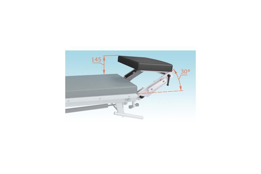 Основой комплекта является рама с приводом подъема и наклоном, на которой крепится съемная подушка. Установленный на операционном столе комплект осуществляет поворот опорной плоскости (подушки) вверх до 30 град., наклон вниз до 45 град. и плоско-параллельный подъем на 120 мм.