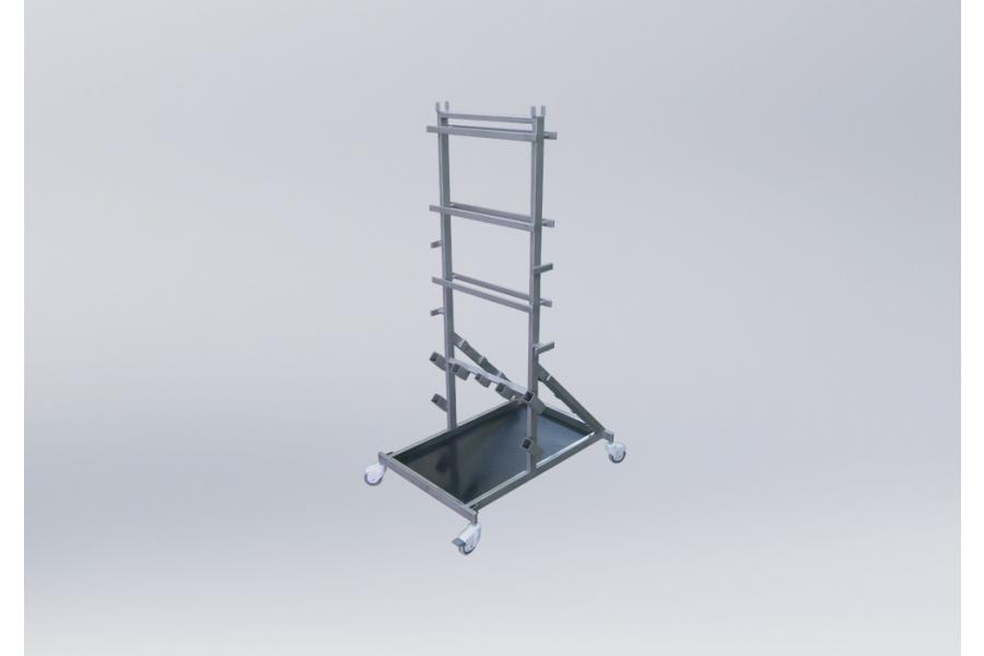 Основой стенда является каркас из профильных нержавеющих труб с поддоном, установленный на колесные опоры, две из которых с тормозами.