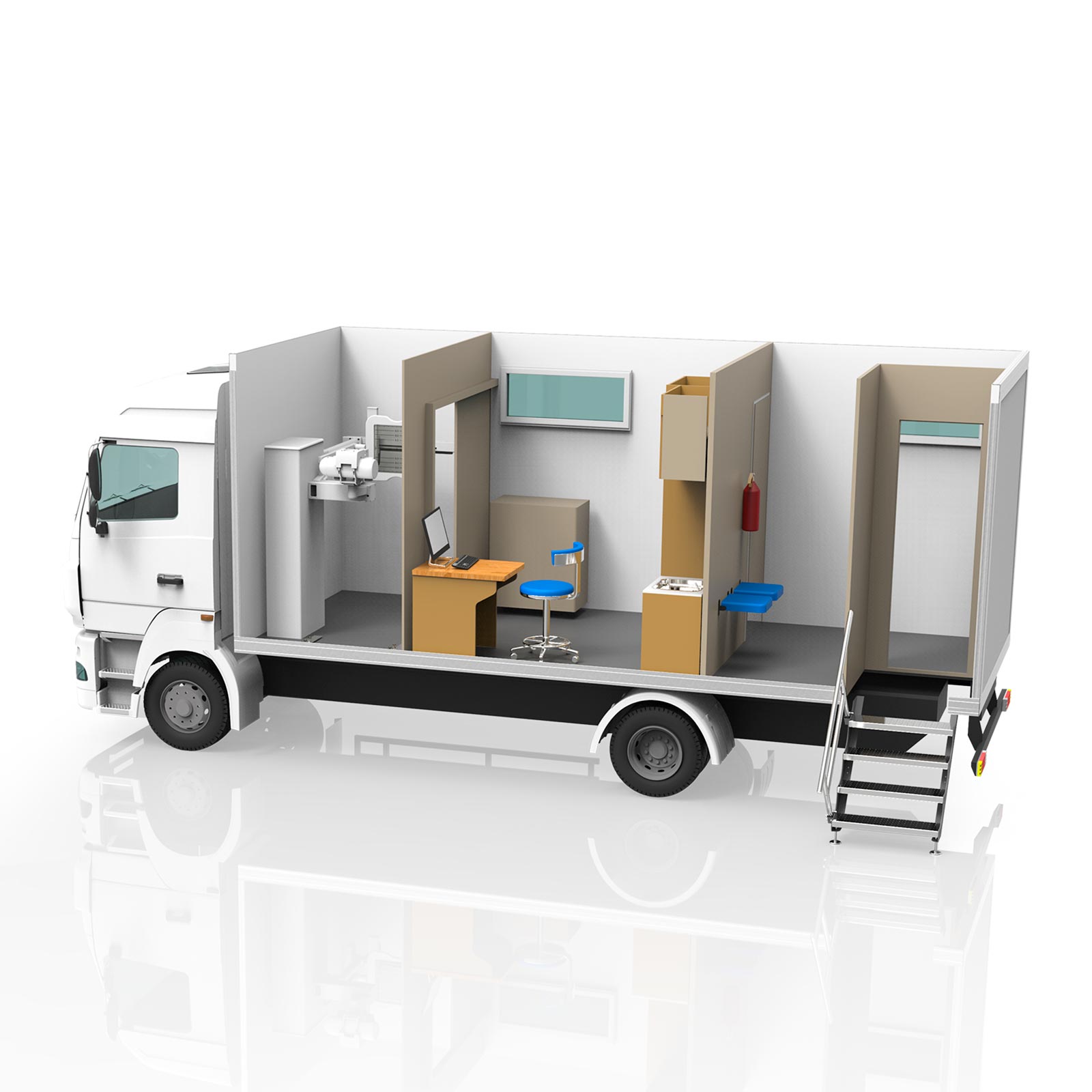 Передвижной рентгеновский кабинет, предназначенный для проведения выездного флюорографического скрининга на предприятиях, армейских подразделениях, в удалённых населенных пунктах и любых труднодоступных регионах.
