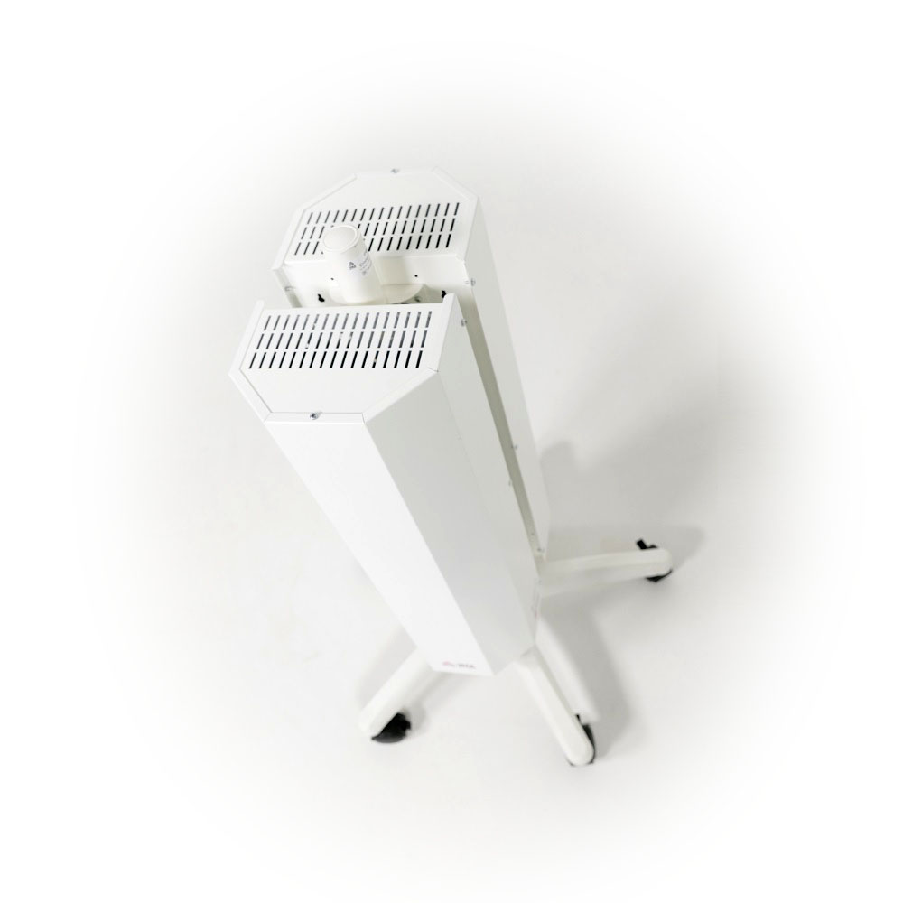 Рециркулятор бактерицидный передвижной РБм 4Х15 + 2Х15 представляет собой конструкцию состоящую из двух рециркуляторов «РБм» (4 лампы + 2 лампы), соединенных между собой на передвижной стойке. Данная модель рециркулятора применяется для обеззараживания воздуха в больших помещениях объемом до 170 м3. Рециркулятор полностью безопасен для человека и может работать в его присутствии.